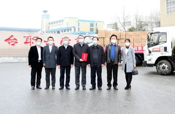 万华化学集团股份有限公司高级人力资源总监兼万华大学执行校长赵继德一行代表公司将防疫物资送到球王会体育北门,院长温金祥代表学校对万华化学集团表示感谢,并颁发捐赠证书。
